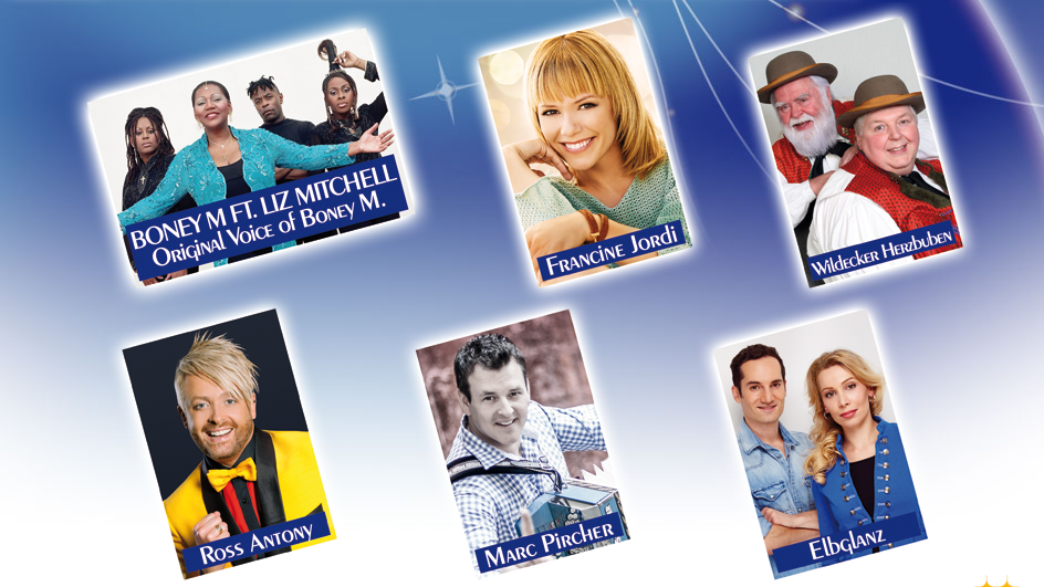 Mit dabei sind: BONEY M., ft. Liz Mitchell – Original Voice of Boney M., Francine Jordi, die Wildecker Herzbuben, Ross Antony, Marc Pircher und Elbglanz