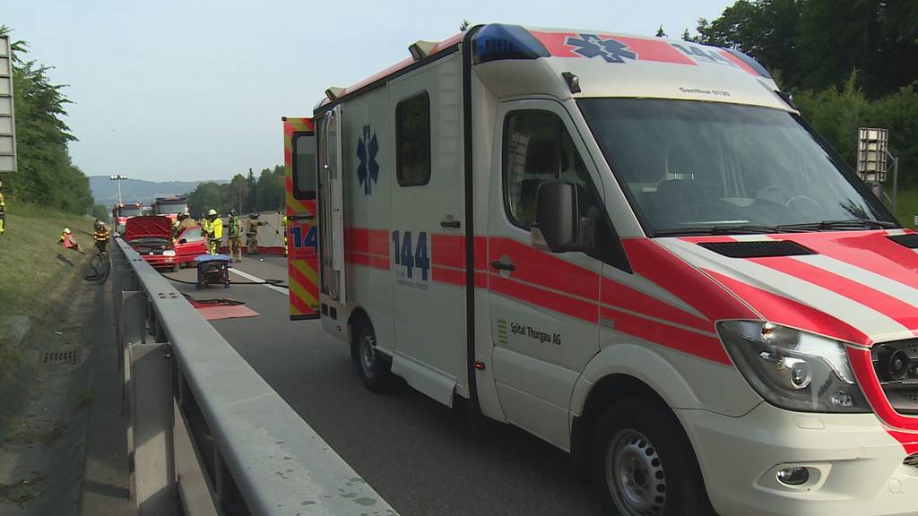 Autowracks liegen am Strassenrand, Sirenen heulen, es wimmelt von Einsatzkräften. Bei dem Bild, das sich den Vorbeifahrenden am Bürerstich auf der A1 bietet, handelt es sich um eine fingierte Unfallstelle. Feuerwehr und Rettungsdienst trainieren die Strassenrettung.